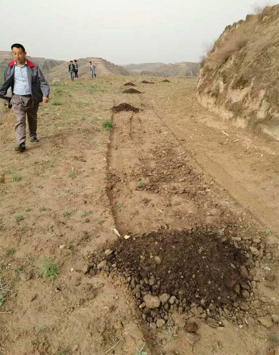山花爛漫公司小雜糧種植基地負責人賀志平、賀利明在基地實地指導農(nóng)民施用農(nóng)家肥